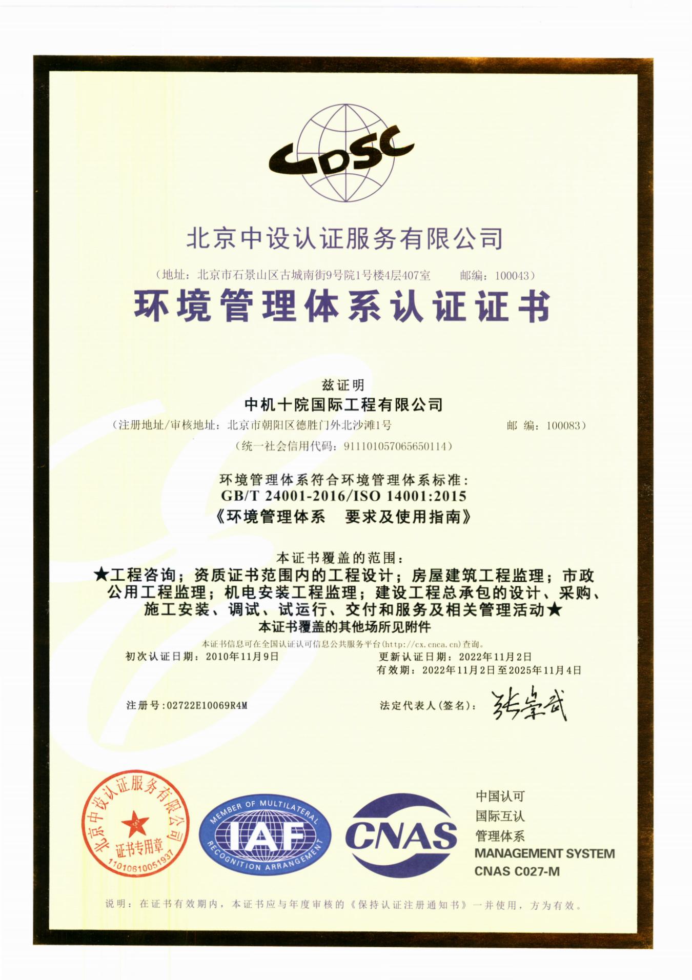 环境管理体系认证证书(中文)