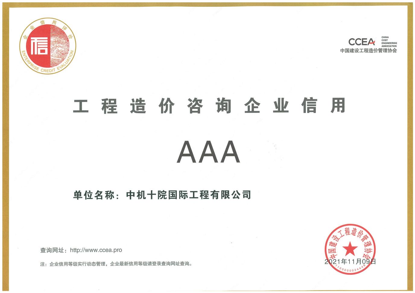 工程造价咨询企业信用AAA级